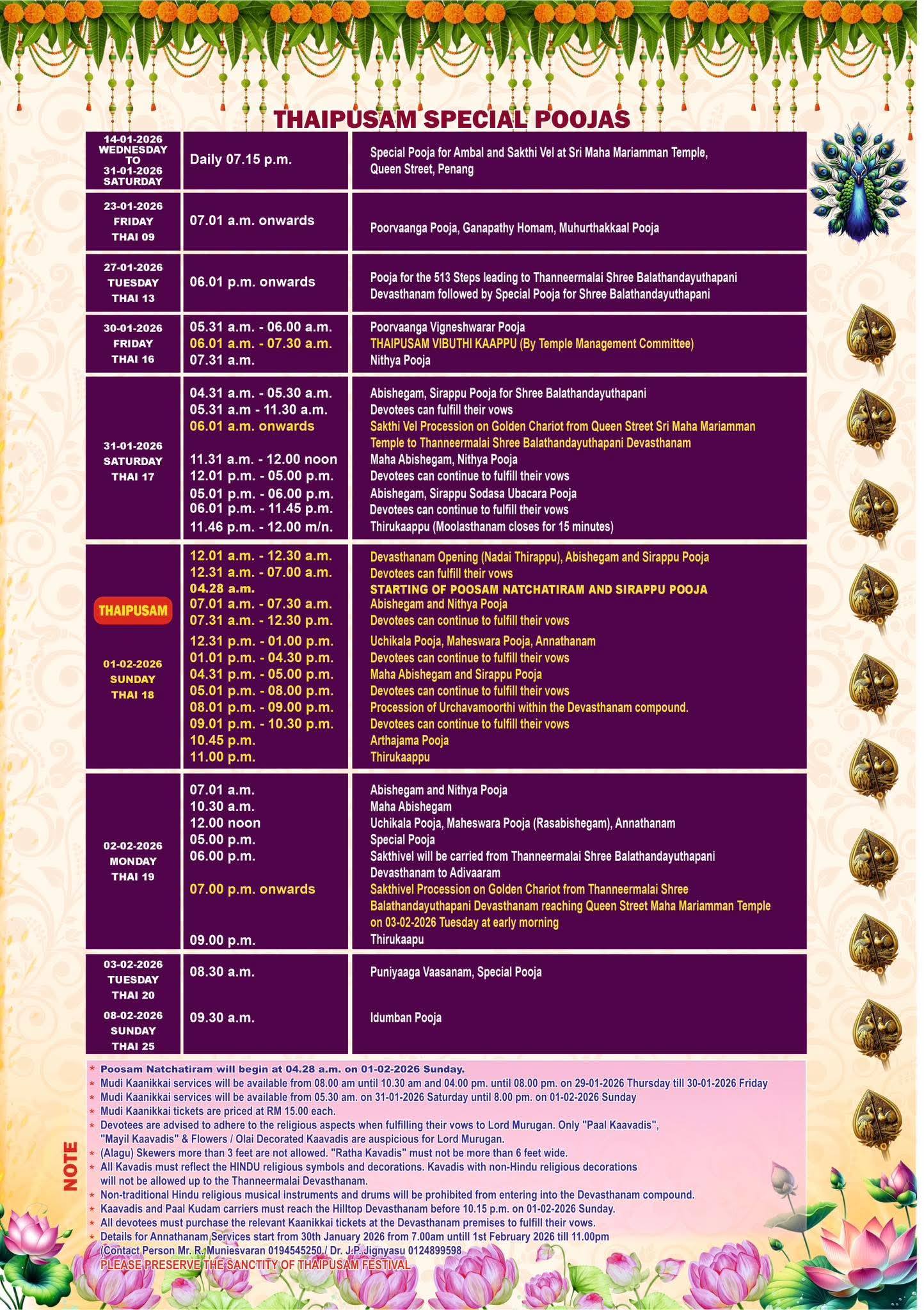 With deep devotion and reverence, we invite all devotees to take part in the 240ᵗʰ year Thaipusam Festival, a sacred celebration honouring Lord Murugan.