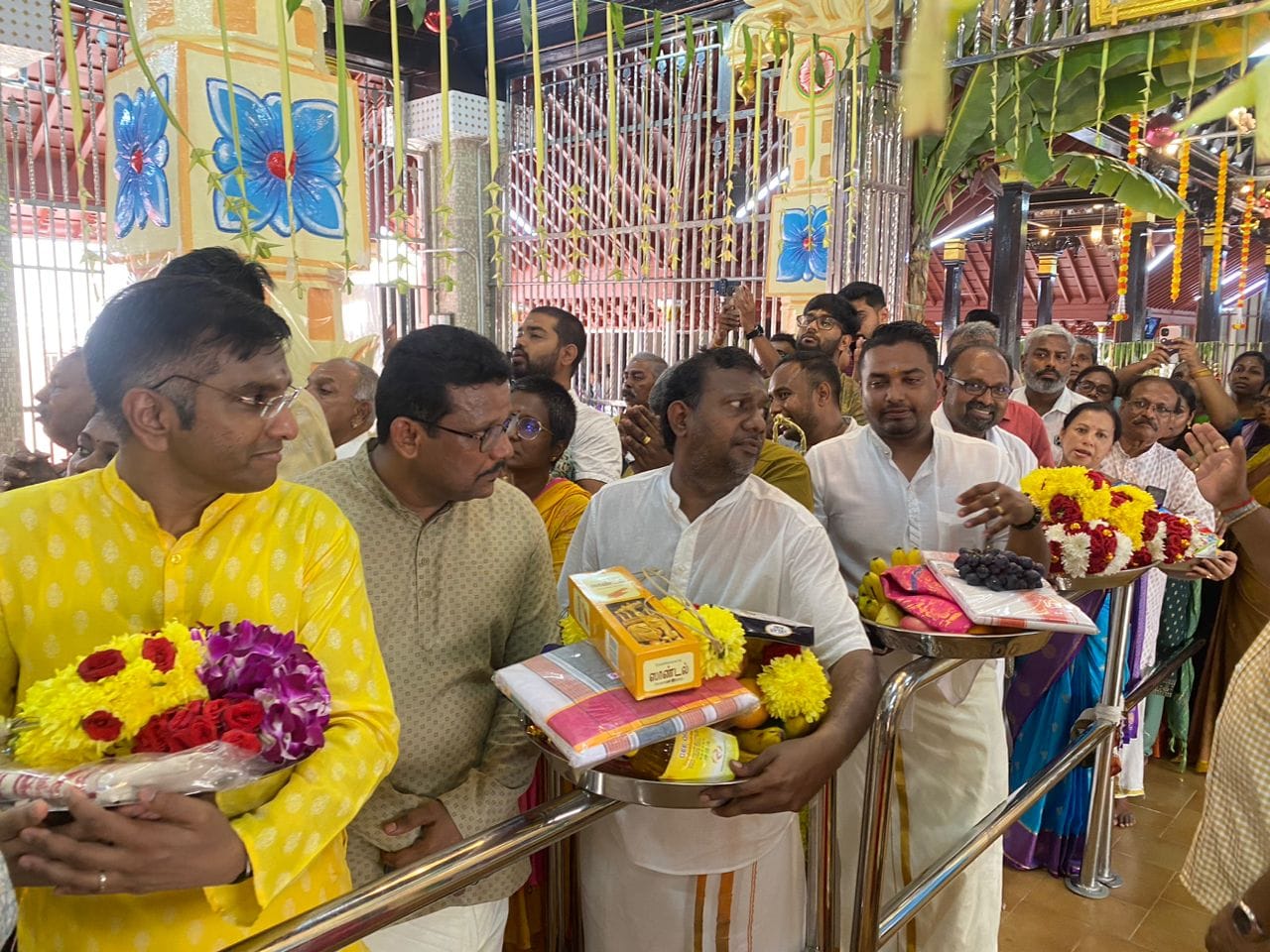 This morning, YB Lingesh RA, Vice Chairman of the Penang Hindu Endowments Board, along with Commissioners Mr. Shanmuganathan and Mr. Sundraraj, attended the Maha Kumbhabhishegam ceremony at the Penang Nagarathar Thandayuthapani Temple – PNTT. Also present were the chairmen and management committees of the Arulmigu Balathandayuthapani Waterfall Temple, Arulmigu Sri Maha Mariamman Temple Queen Street, Penang, and Sri Ramar Temple, Penang. They took part in offerings and received blessings during this sacred event 🙏🏽