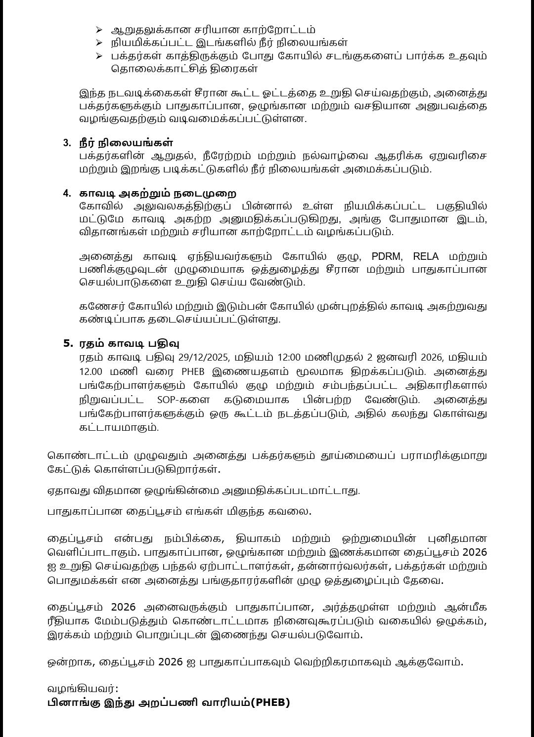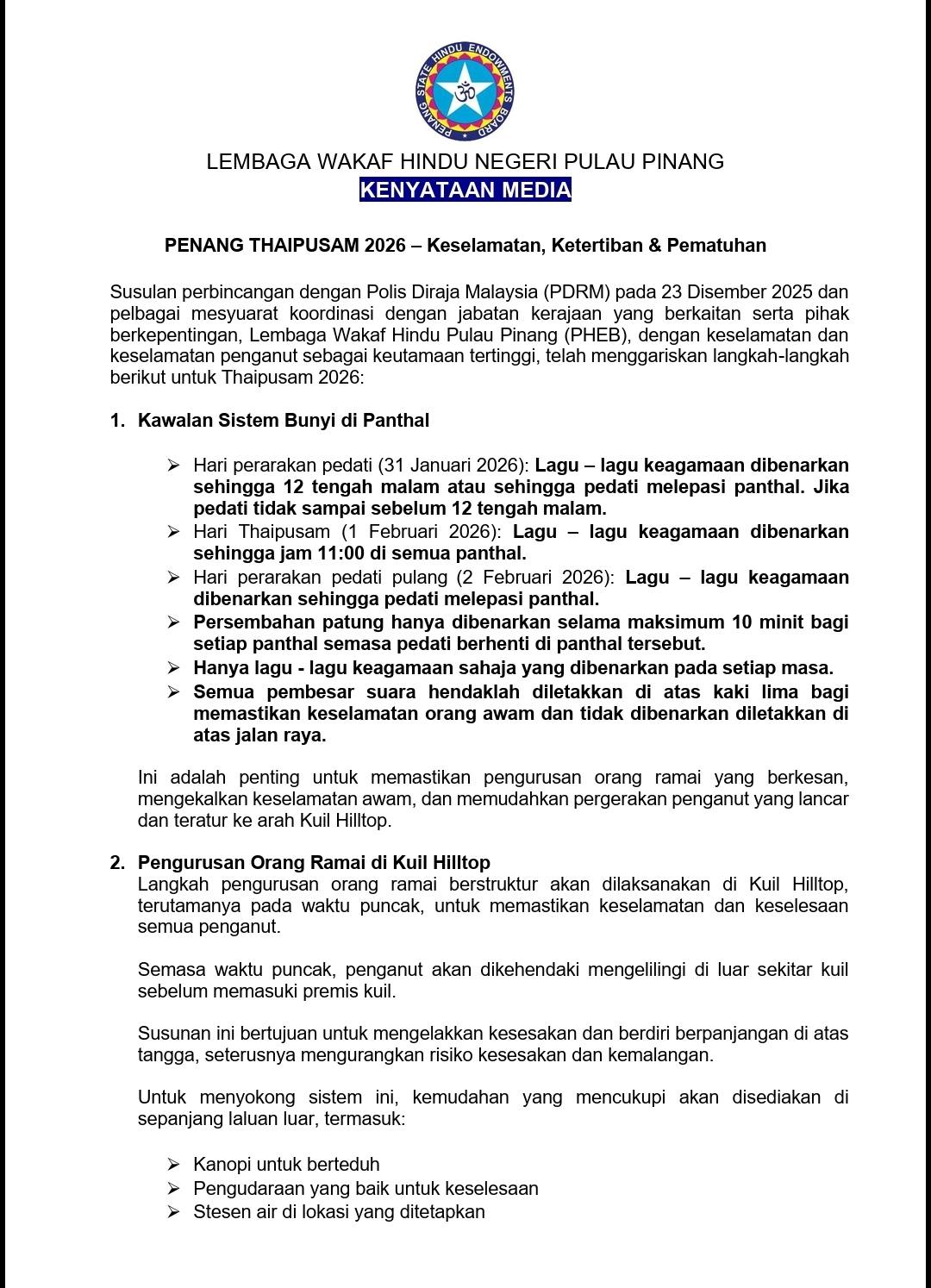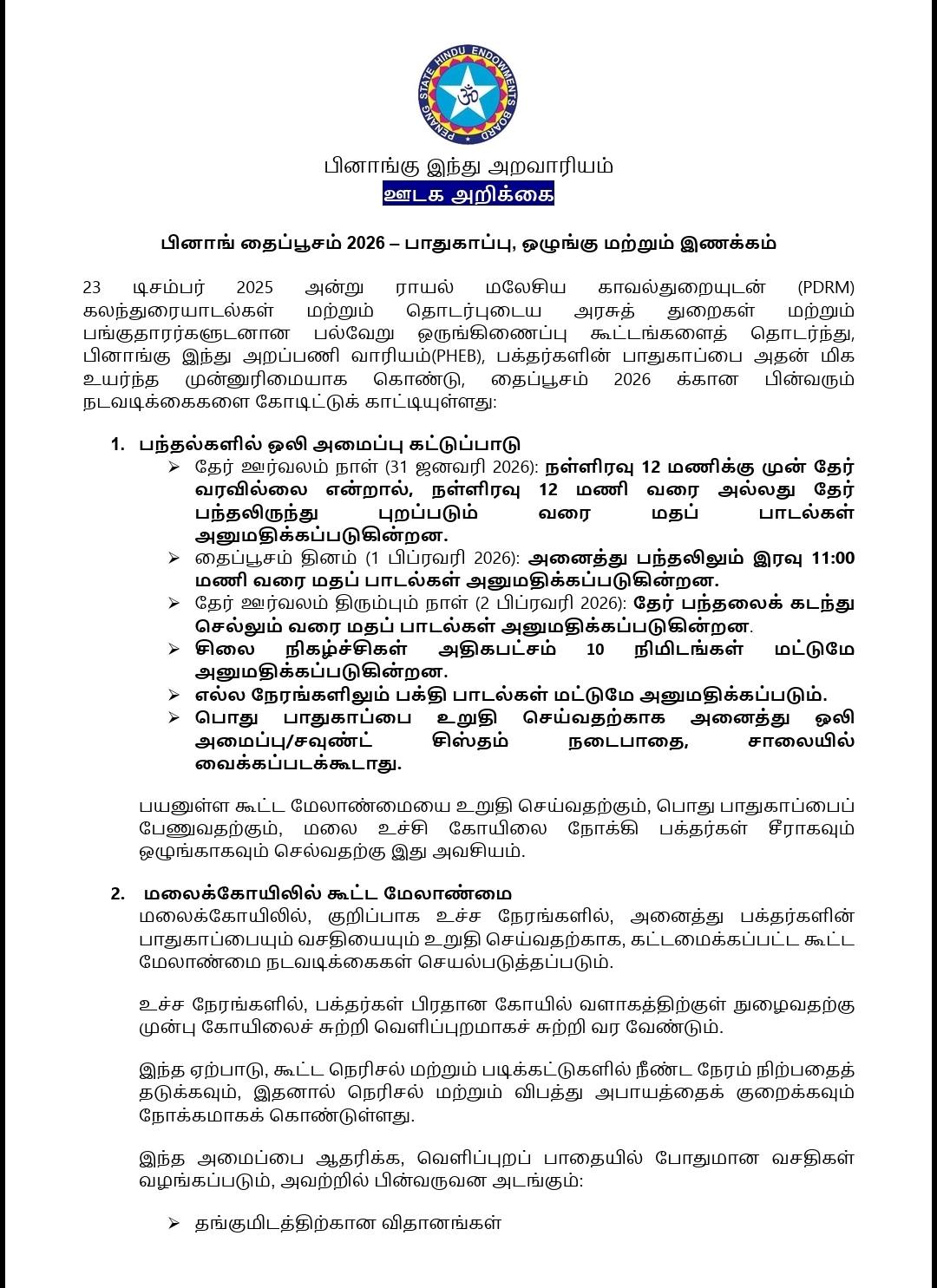 Penang Thaipusam 2026 – Safety, Order & Compliance