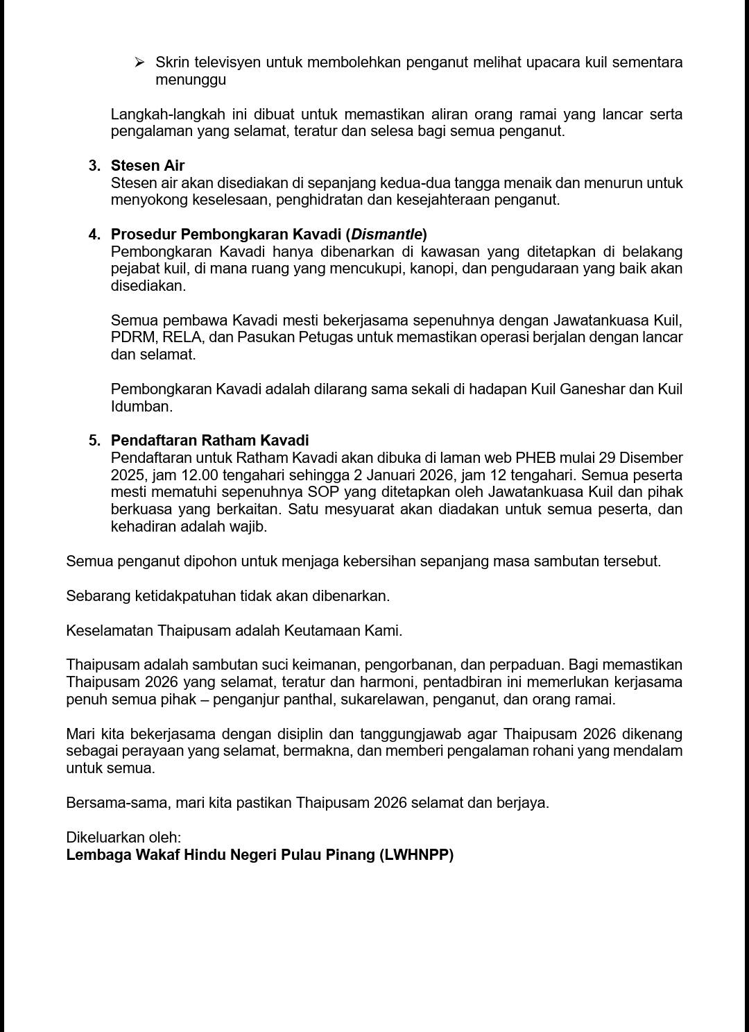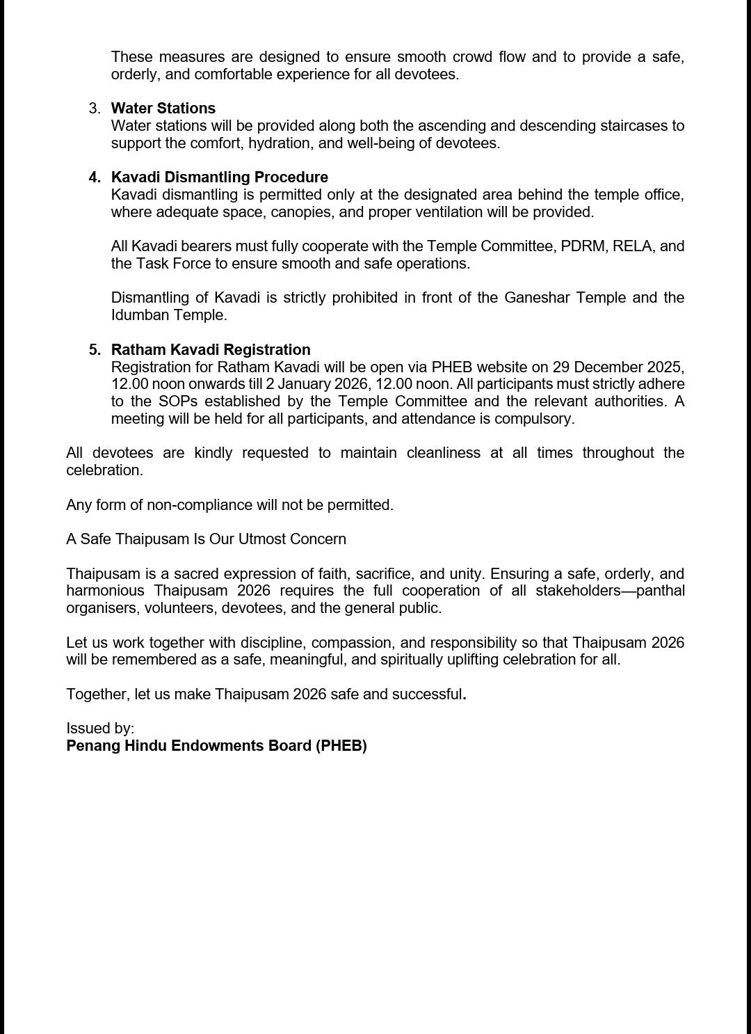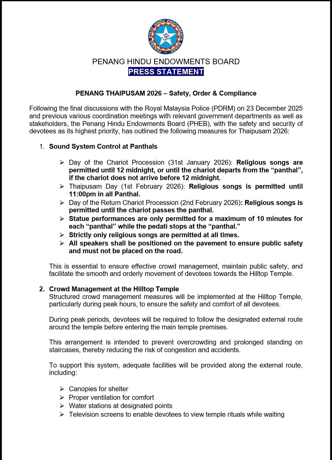 Penang Thaipusam 2026 – Safety, Order & Compliance