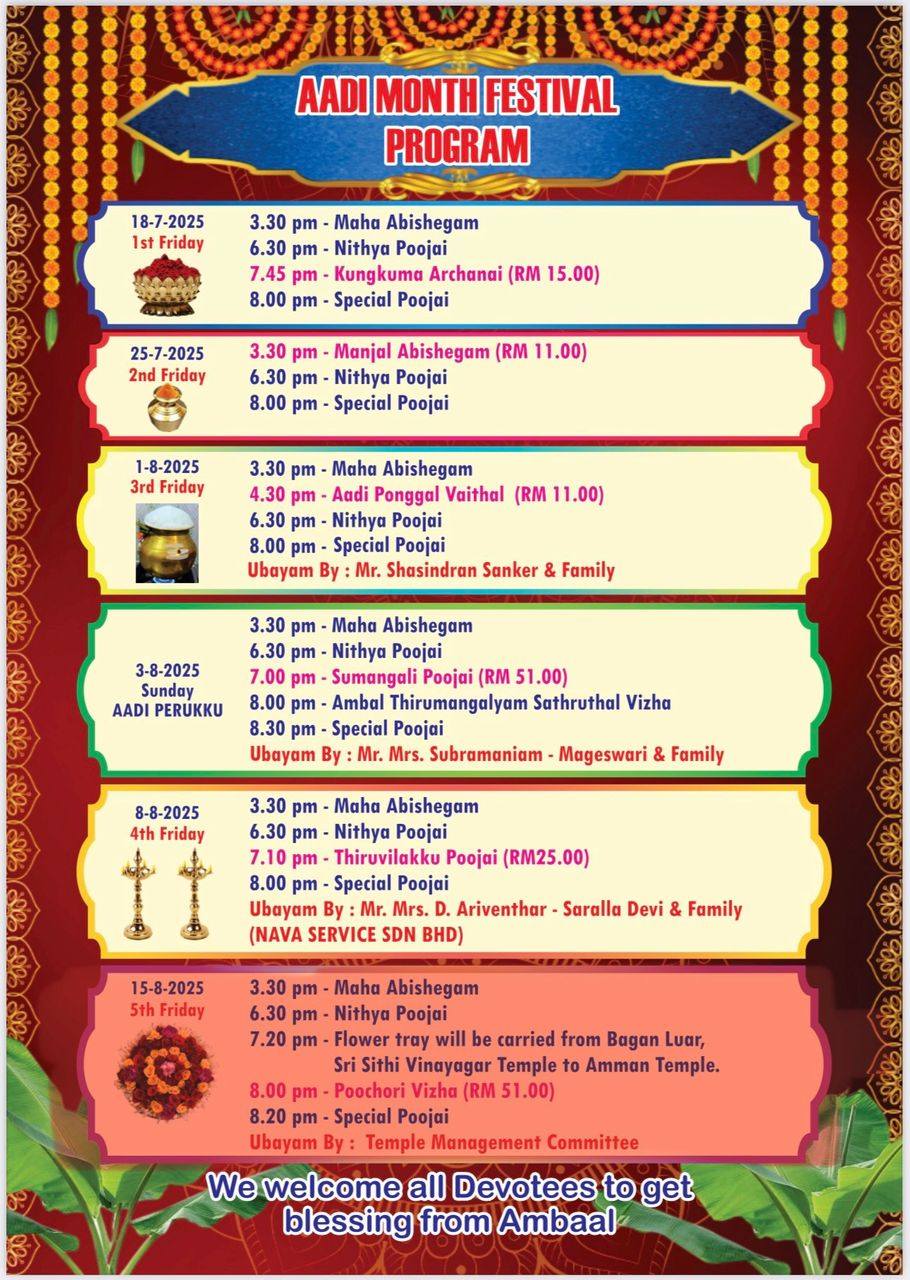 📅 Date: Friday, 15th August 2025 ⏰ Time: 7:20 PM 📍 Commencement Point: Sri Sithi Vinayagar Temple, Bagan Luar ➡️ Procession To: Sree Maha Mariamman Devasthanam, Butterworth