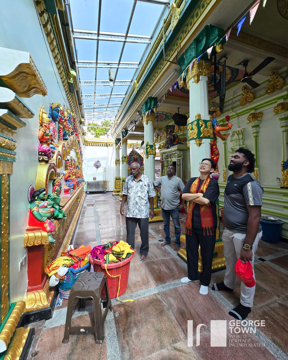 The Penang Hindu Endowments Board joined GTWHI representatives on a site visit to the Sri Mahamariamman Temple at Lebuh Queen to review ongoing restoration works under the Repair Incentive Project. Together, the team assessed the progress and discussed improvements to ensure the temple’s heritage is preserved with quality and care.