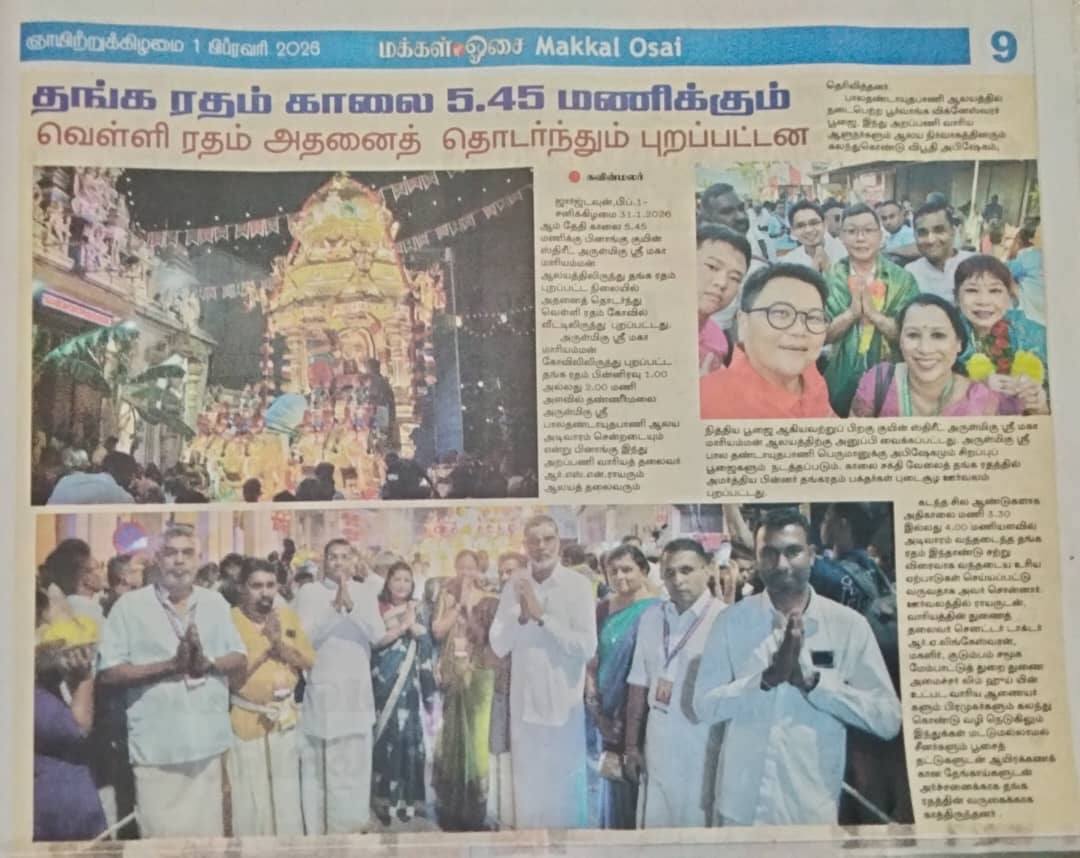 The Golden Chariot continues to shine across today’s headlines a testament to the devotion, discipline, and teamwork that keep Thaipusam moving safely for thousands of devotees.