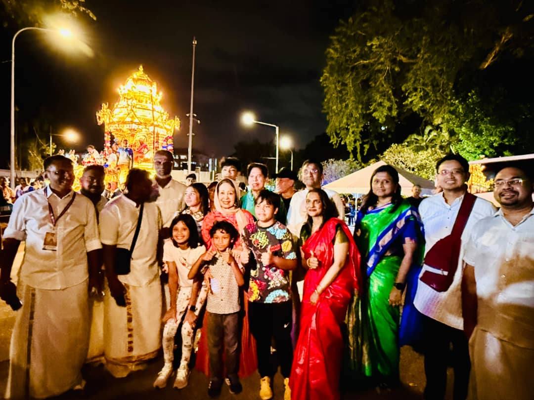As the Golden Chariot passed Seri Mutiara this evening, TYT Tun Dato’ Seri Utama Haji Ramli bin Ngah Talib and Toh Puan stepped out to greet the procession, offering their respect to the devotees and blessings to the community.