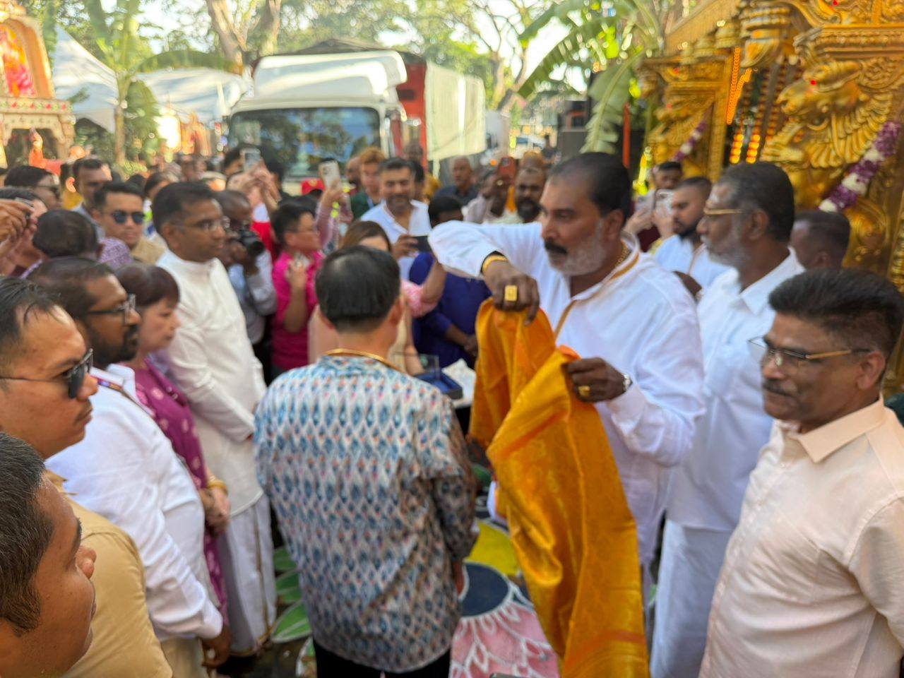 RSN Rayer, Jelutong and Commissioners, he stopped by several panthals to meet volunteers, greet devotees, and appreciate the dedication behind each offering of service.
